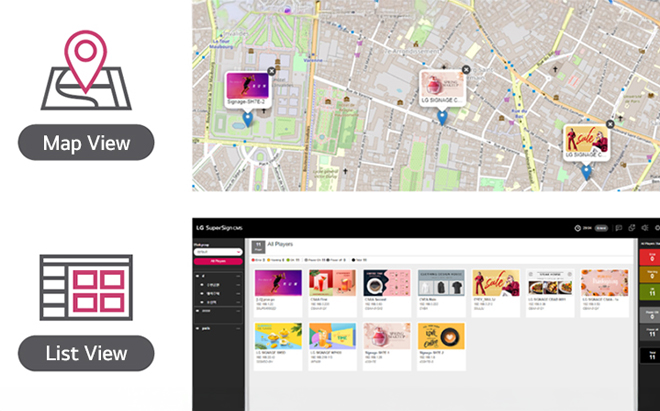 Provides real-time status of the devices and the content connected to each device in a ‘Map View’ or a ‘List View’, which is essential for ensuring the smooth functioning of all connected devices.