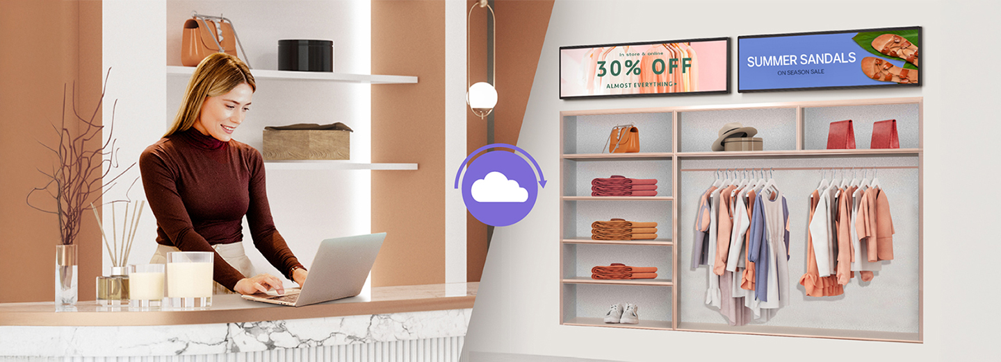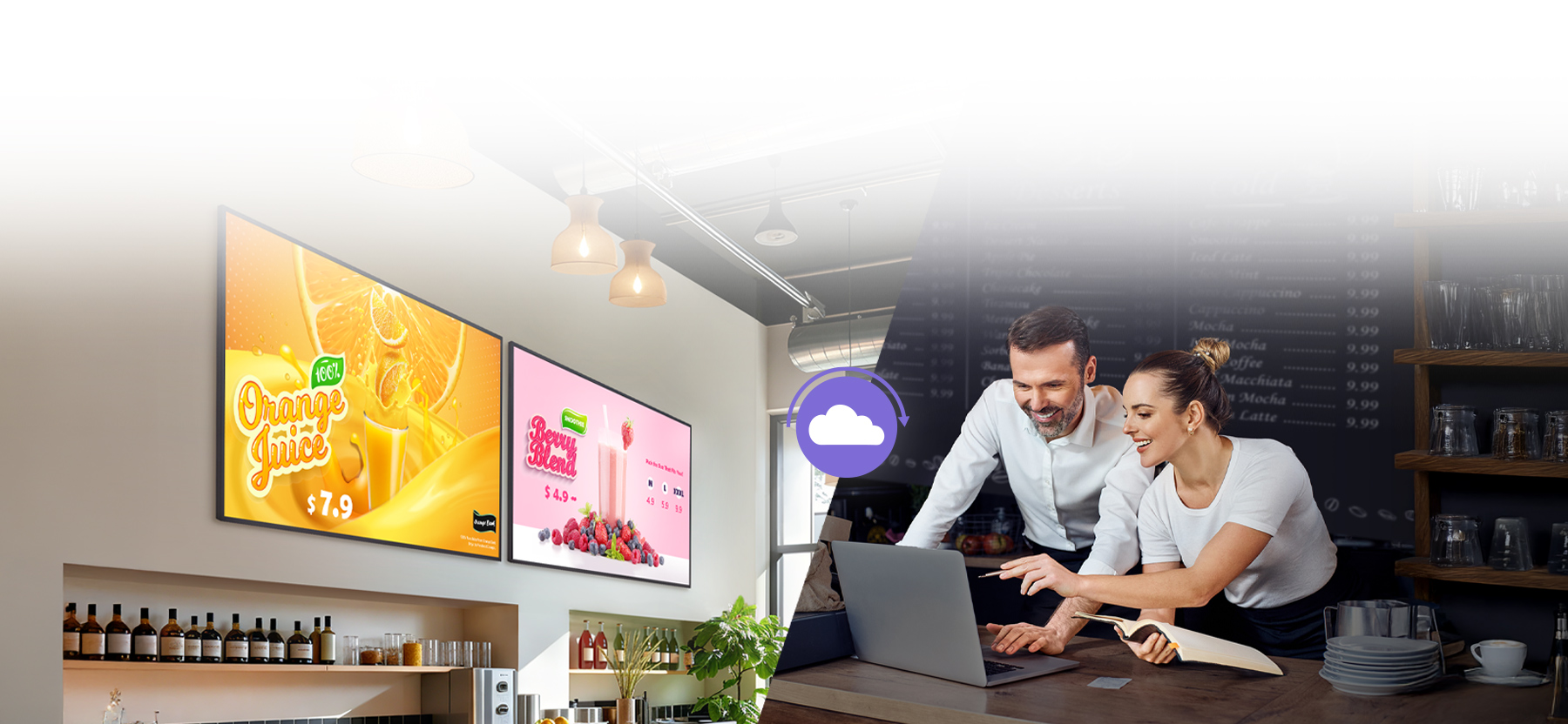 LG SuperSign Cloud is a cloud-based CMS (Content Management Solution) for integrated digital signage management. Through LG SuperSign Cloud, users can remotely control multiple displays*, create and distribute content tailored to each space anytime anywhere without being restricted by time and location**.