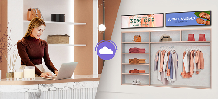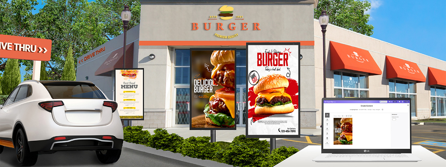 By utilizing a content management software solution, LG SuperSign Cloud, businesses can reduce the time spent on aggregating separate sources for content creation. LG SuperSign Cloud is a software solution that provides various efficient content management features with flexible editing functions for users to create and distribute content on their signage displays effortlessly.